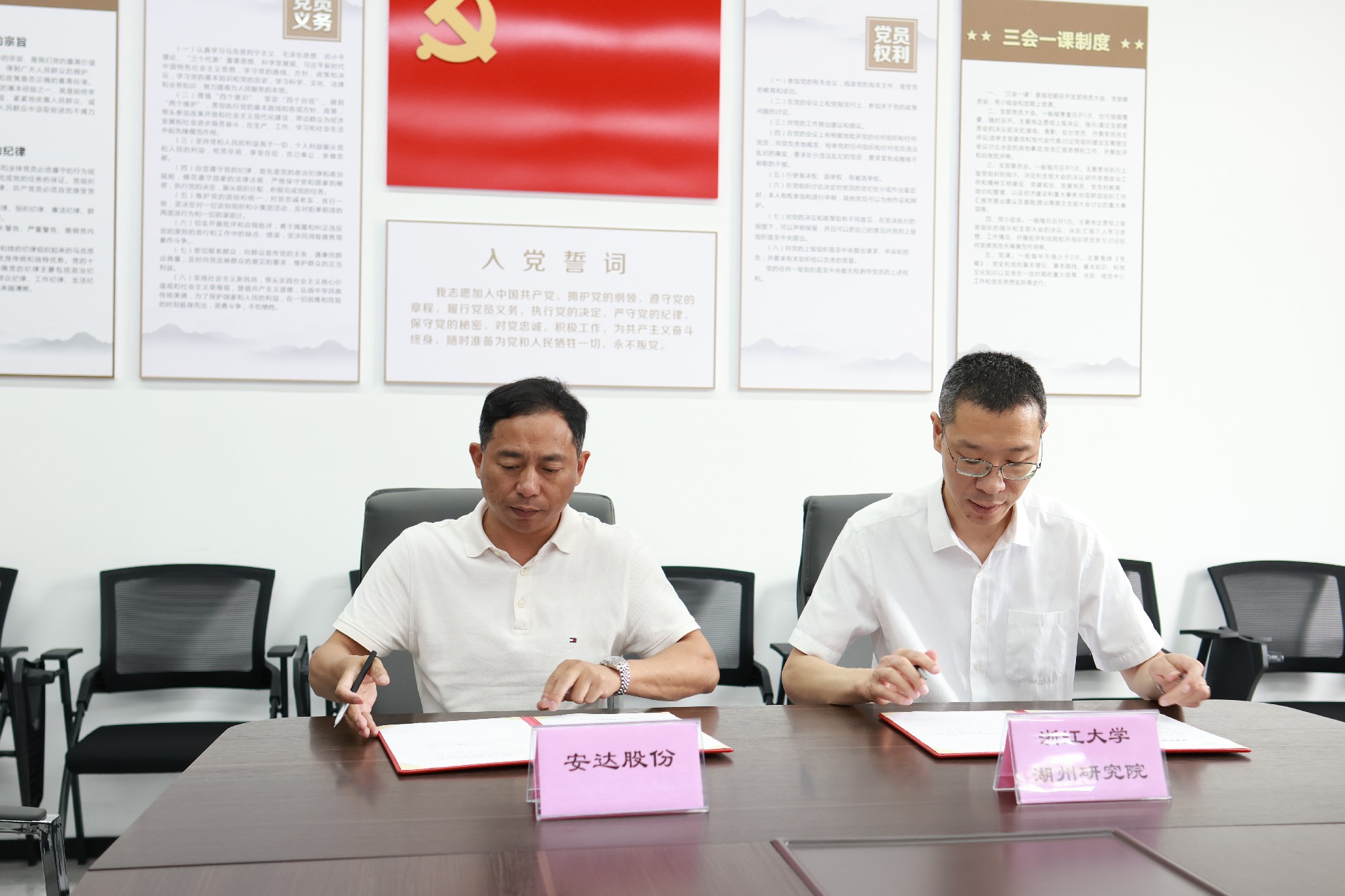 6月13日,湖州安達(dá)汽車配件股份有限公司與浙江大學(xué)湖州研究院項(xiàng)目合作簽約儀式在公司舉行,雙方共同簽署“基于能耗監(jiān)管的智能控制系統(tǒng)研發(fā)項(xiàng)目”合作協(xié)議。浙江大學(xué)湖州研究院副院長(zhǎng)張偉、公司董事長(zhǎng)、黨委書記管會(huì)斌等出席活動(dòng)。